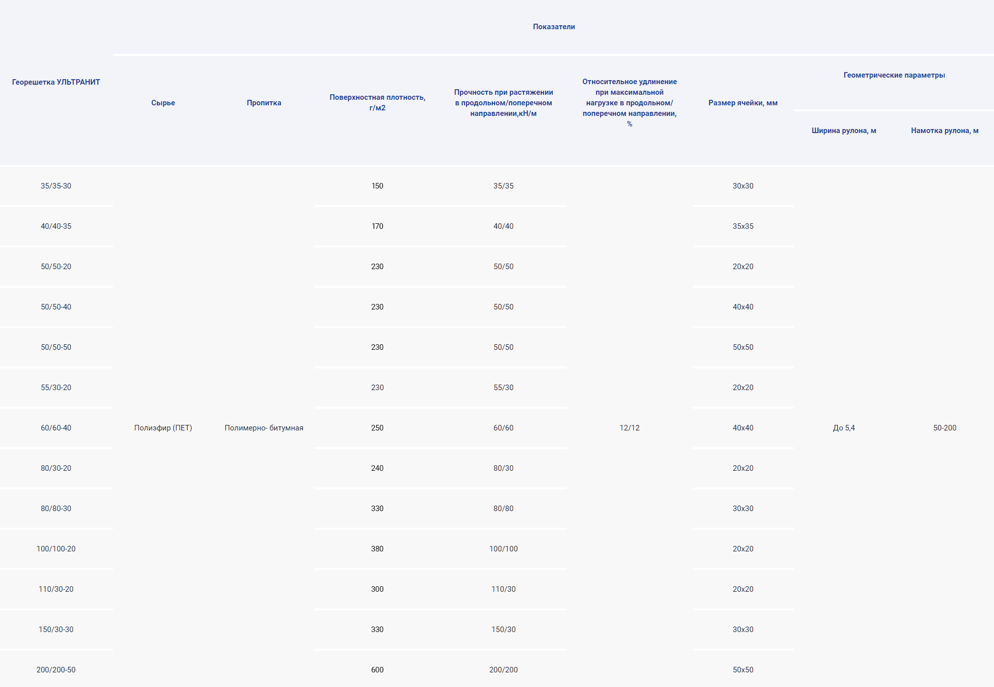 Георешётка Ультранит 100/100-20 – П, СТО 46487778-002-2015, где: